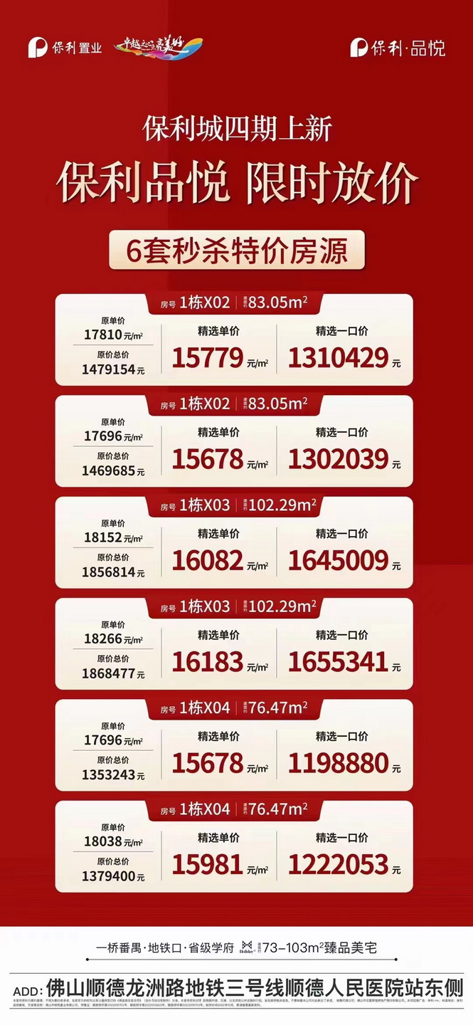 | 團購動態:共有131人團購報名!順德大良保利中悅廣場推出限時元,精選6套工抵房限時一口價,金凰鳳旁·唯獨在售準現樓,建面約36-51㎡城央江園雙景小戶 |